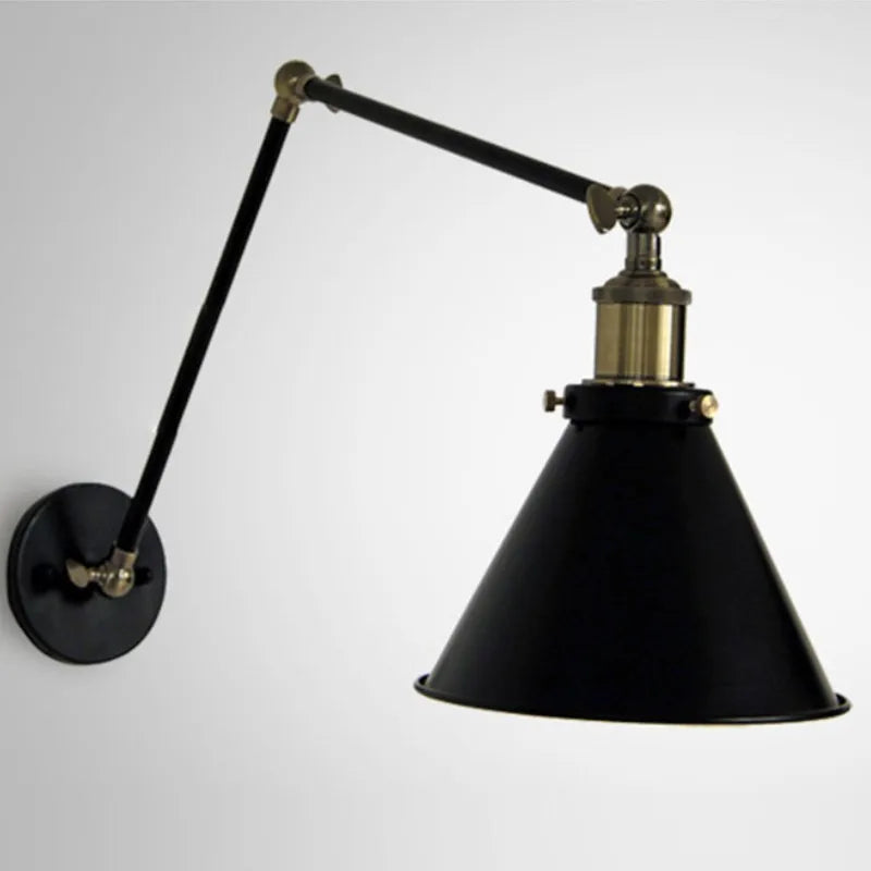 Lámpara de pared ajustable DecorBites™ con pantalla de paraguas negra, ideal para cafeterías, estudios y salas de estar.