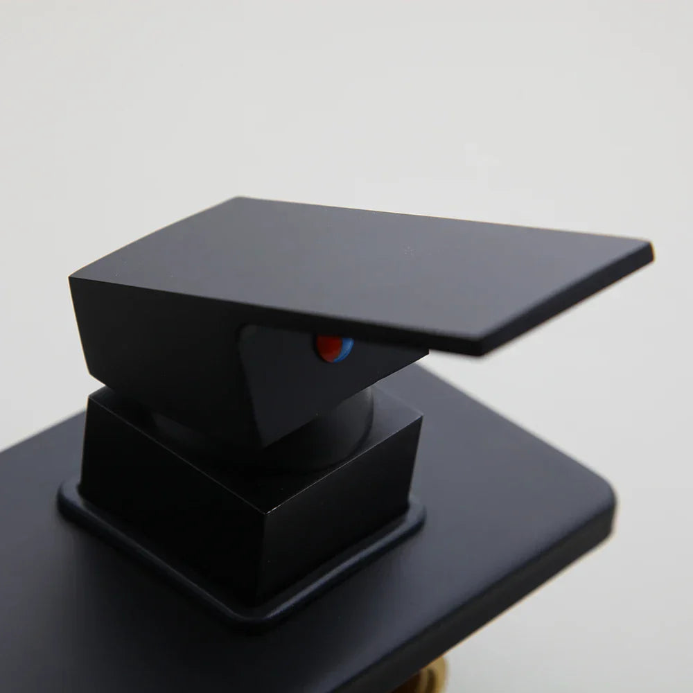 Grifo de lavabo mural DecorBites™ negro, mezclador de agua fría y caliente de latón macizo.