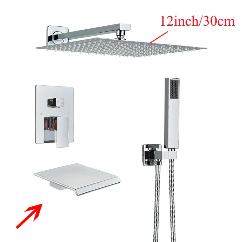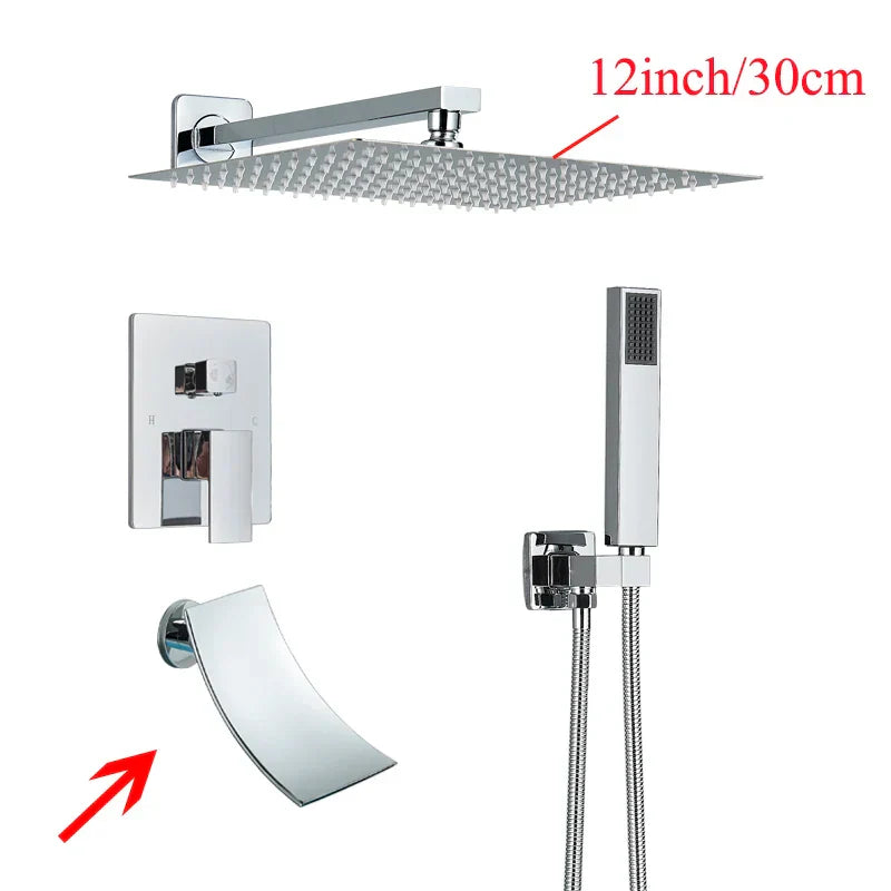 Presentamos el sistema de ducha mural Decorbites negro con teleducha y grifo de lluvia de 12/16 pulgadas, diseñado para quienes buscan estilo y funcionalidad en su baño. Este lujoso sistema de ducha cuenta con un diseño contemporáneo que aporta un toque de elegancia a cualquier espacio.