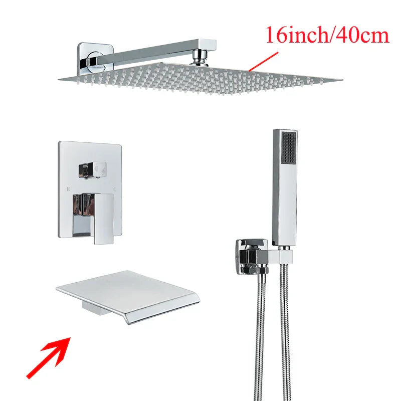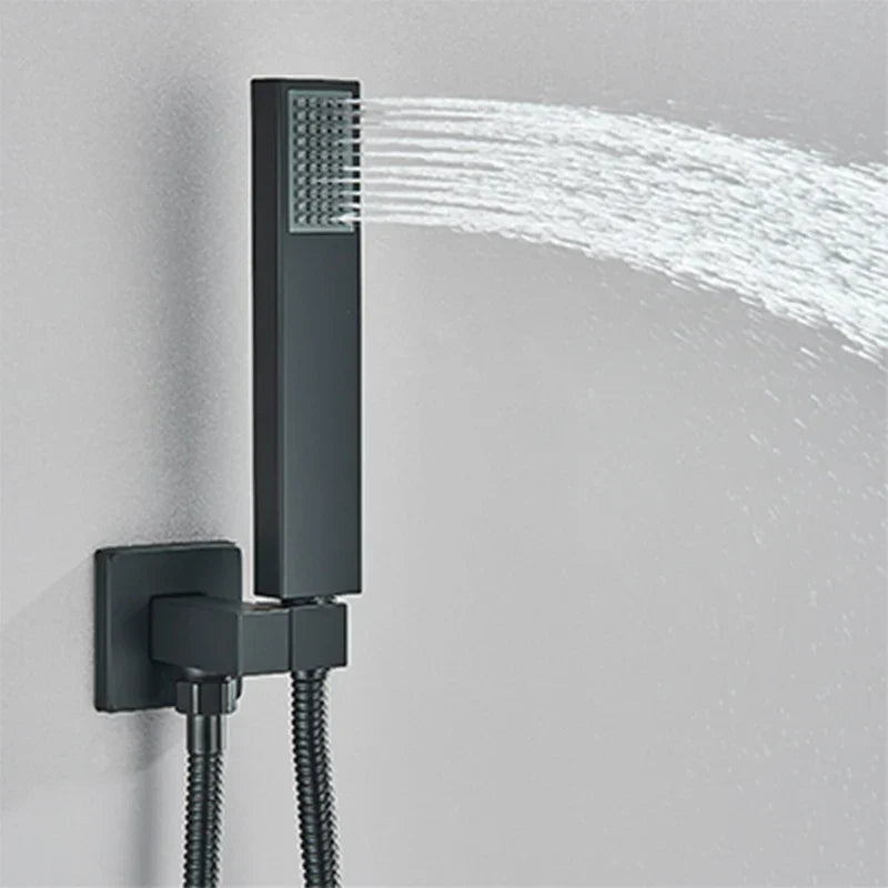 Sistema de ducha mural DecorBites™ negro con teleducha - Grifo de agua de lluvia de 12/16 pulgadas
