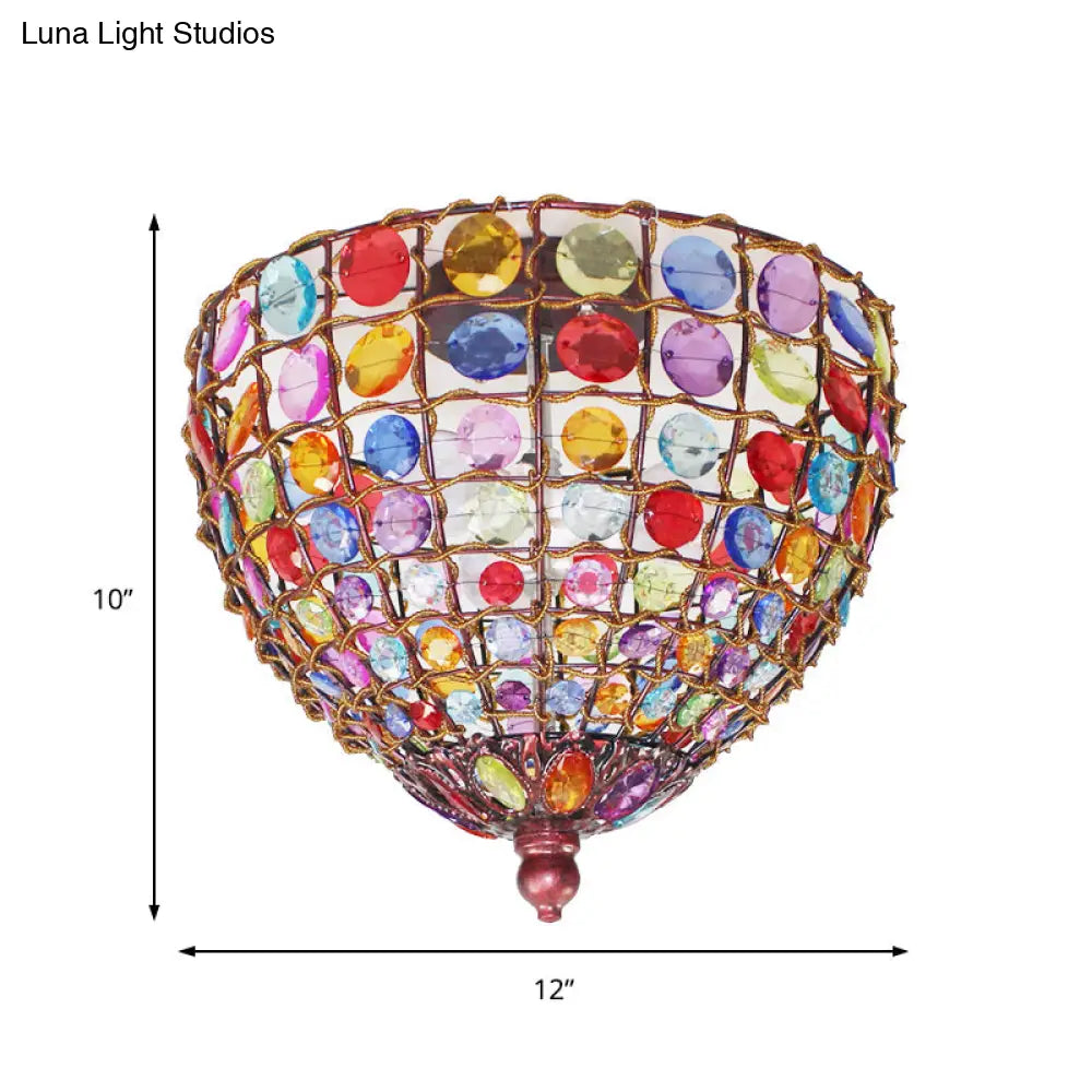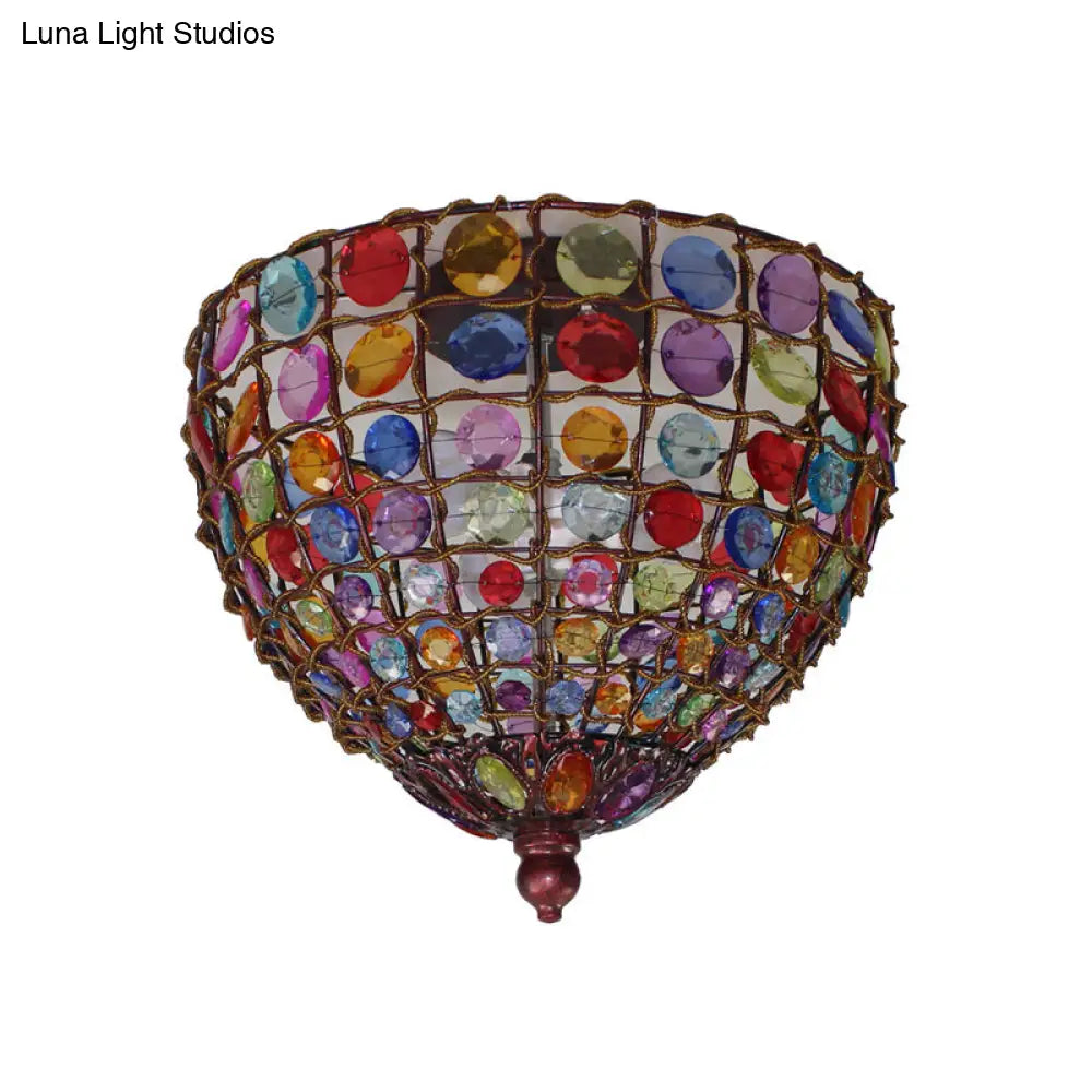 Lámpara de techo empotrada DecorBites™ estilo bohemio de hierro con 3 luces, acabado en cobre envejecido y soportes de vidrio