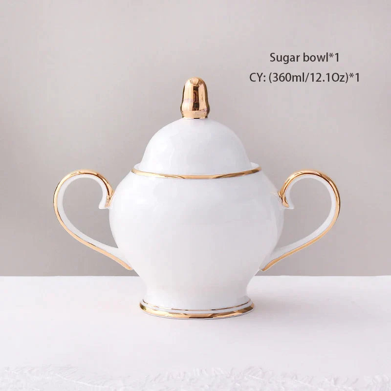 Juego de café DecorBites™ de porcelana fina, juego de té de porcelana blanca y oro, tetera de diseño avanzado
