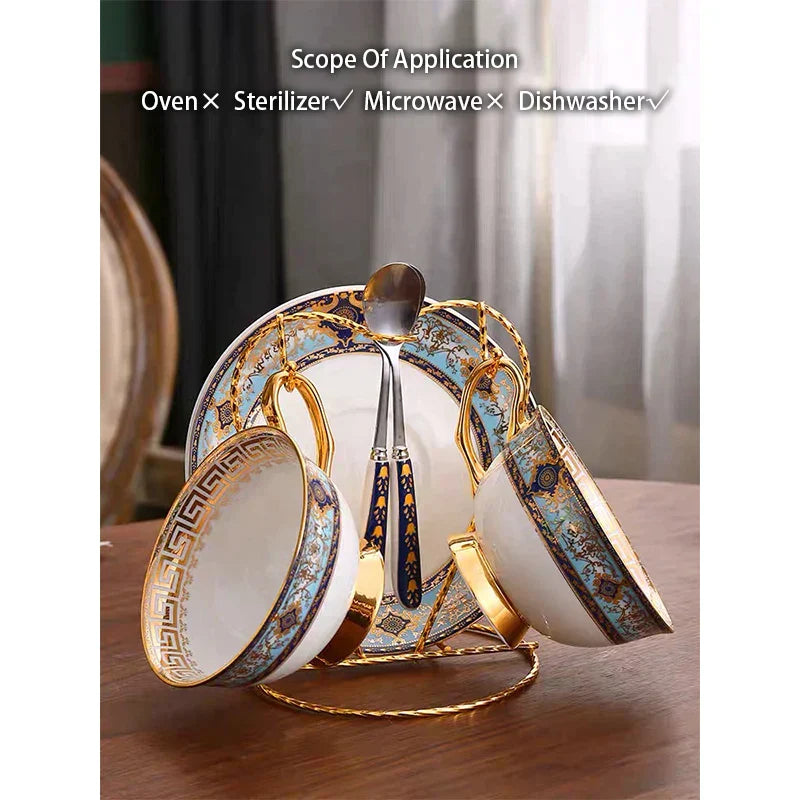 Juego de té DecorBites™ de porcelana fina: Elegante vajilla europea de cerámica para café y té.