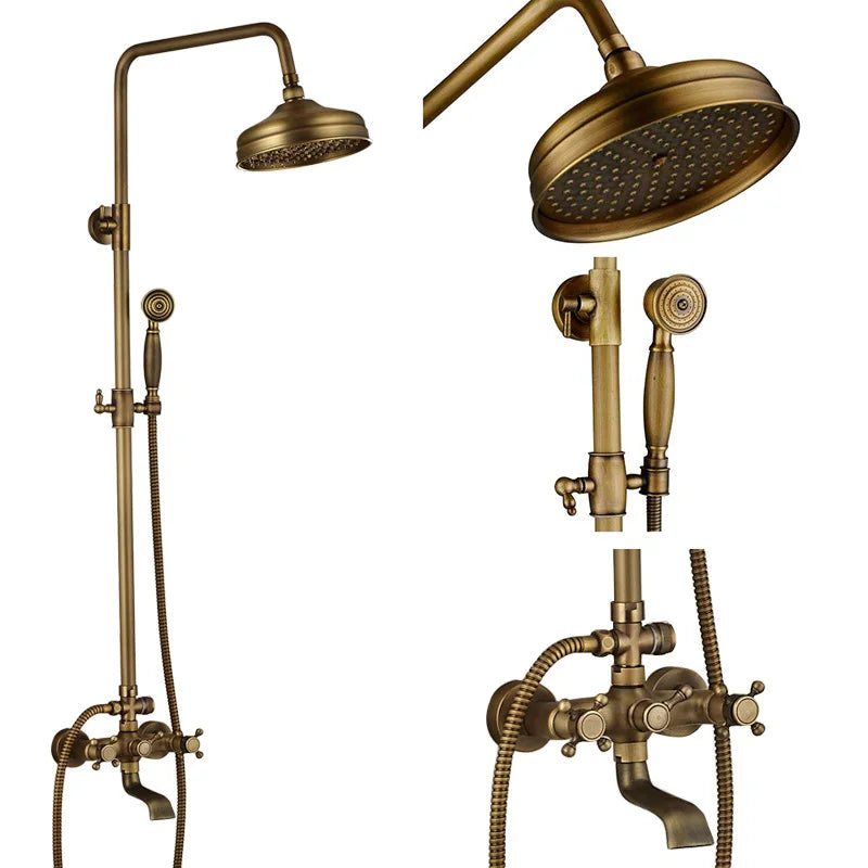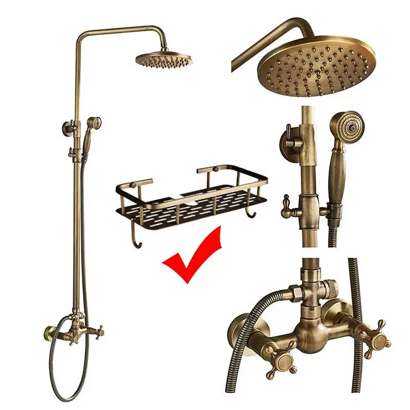 Presentamos el juego de grifería mezcladora para ducha Decorbites de latón con rociador tipo lluvia de 8", estante de almacenamiento y ganchos. Este exquisito juego de grifería para ducha combina funcionalidad y estilo para llevar tu experiencia en el baño a un nuevo nivel.