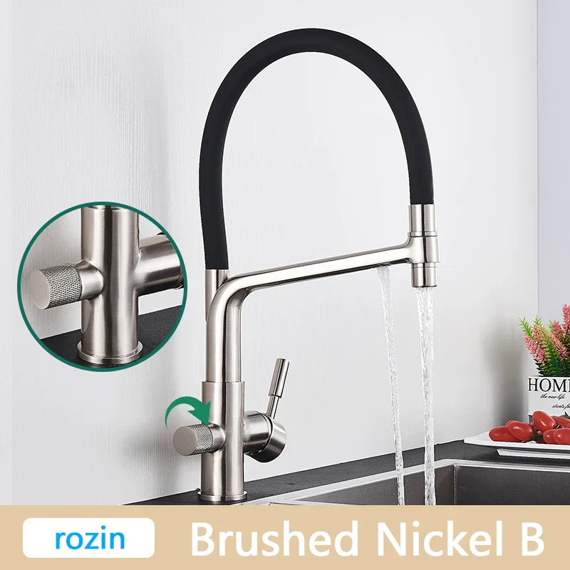 Presentamos el grifo de cocina giratorio Decorbites en oro cepillado con función de purificación, un símbolo de elegancia y funcionalidad para su cocina moderna. Fabricado con precisión y atención al detalle, este grifo está diseñado para elevar su experiencia culinaria a un nuevo nivel.