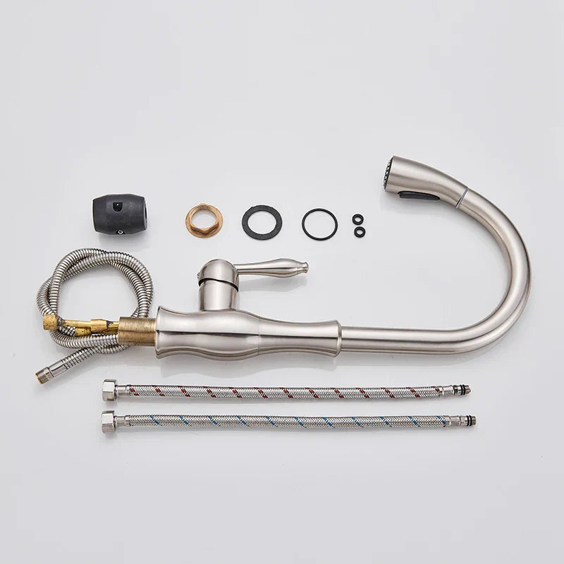 Grifo mezclador monomando extraíble DecorBites™ de níquel cepillado para cocina