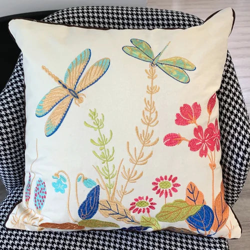 Funda de cojín para sofá DecorBites™ con diseño bordado de mariposa y libélula, diseño europeo.