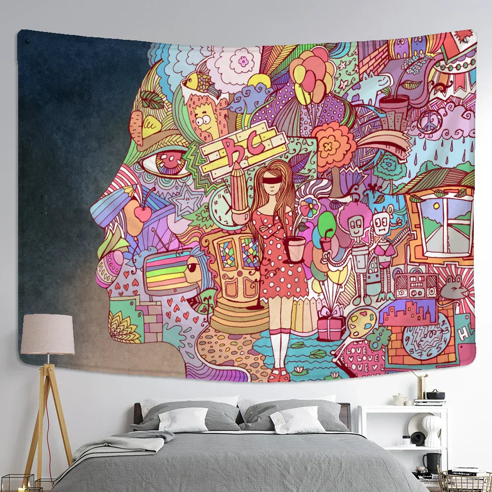 Tapiz DecorBites™ Patas de Gato: Decoración Psicodélica Hippie para Dormitorio de Chica, con Cartas del Tarot de Brujería Bohemia