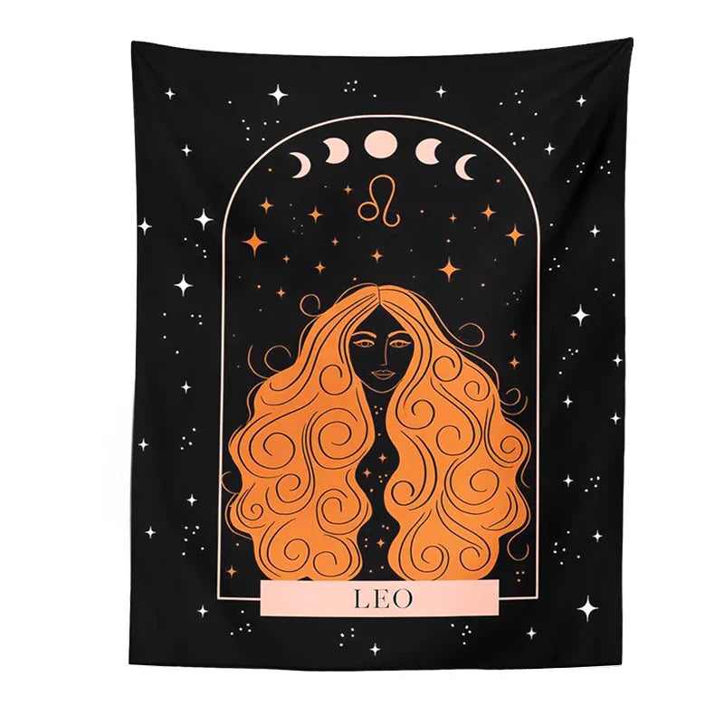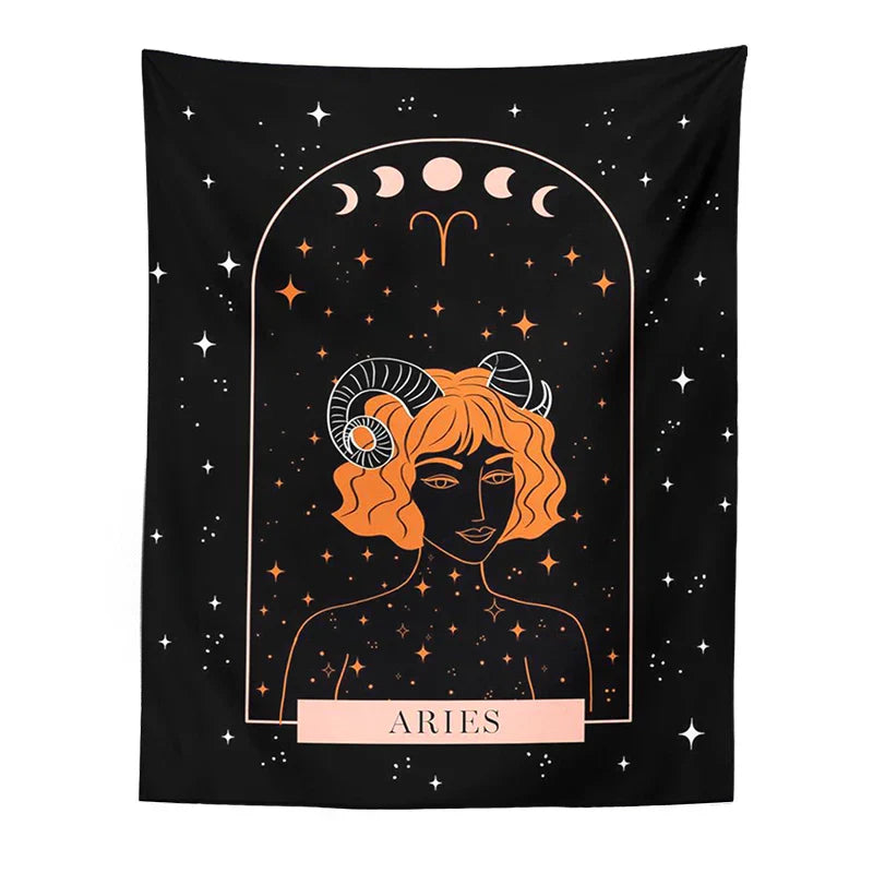 Tapiz DecorBites™ con diseño de constelaciones celestiales y fases lunares para colgar en la pared: una decoración única para el hogar.