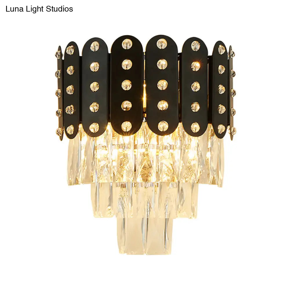 Lámpara de pared DecorBites™ de cristal facetado transparente: 3 luces, 3 niveles, montaje en pared. Diseño contemporáneo en negro.