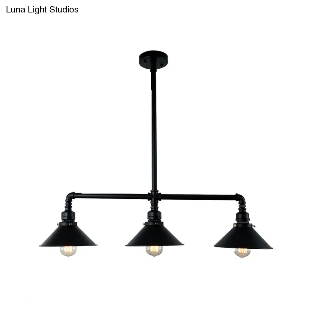 Lámpara de techo DecorBites™ estilo isla cónica para comedor - Negra metálica, 3 bombillas
