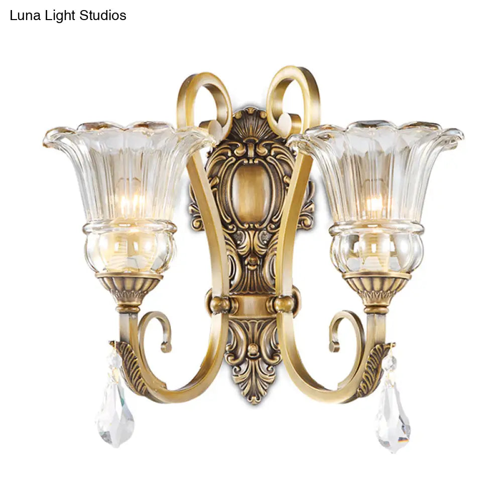 Aplique de pared contemporáneo de latón DecorBites™ con colgante de cristal - Aplique floral para dormitorio