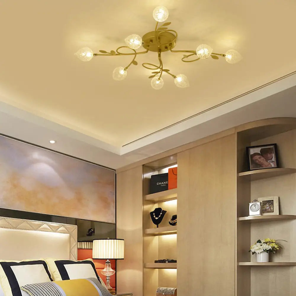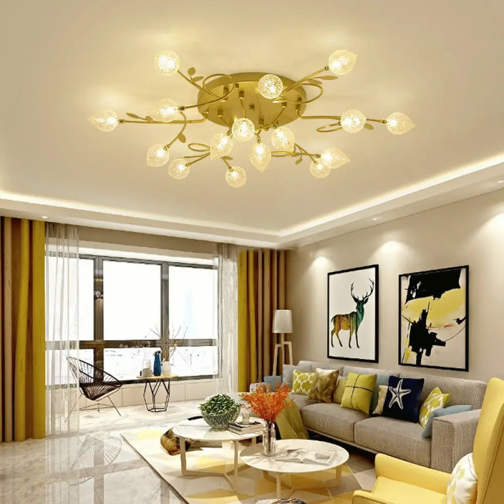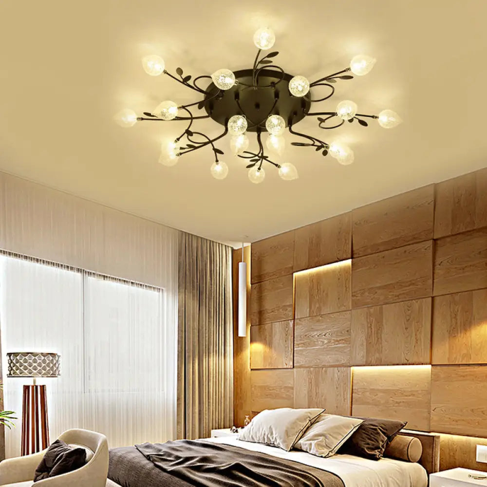 Lámpara de techo DecorBites™ de estilo contemporáneo con forma de rama de cristal burbujeante - 8/12/16/20 luces - Montaje empotrado en negro/dorado