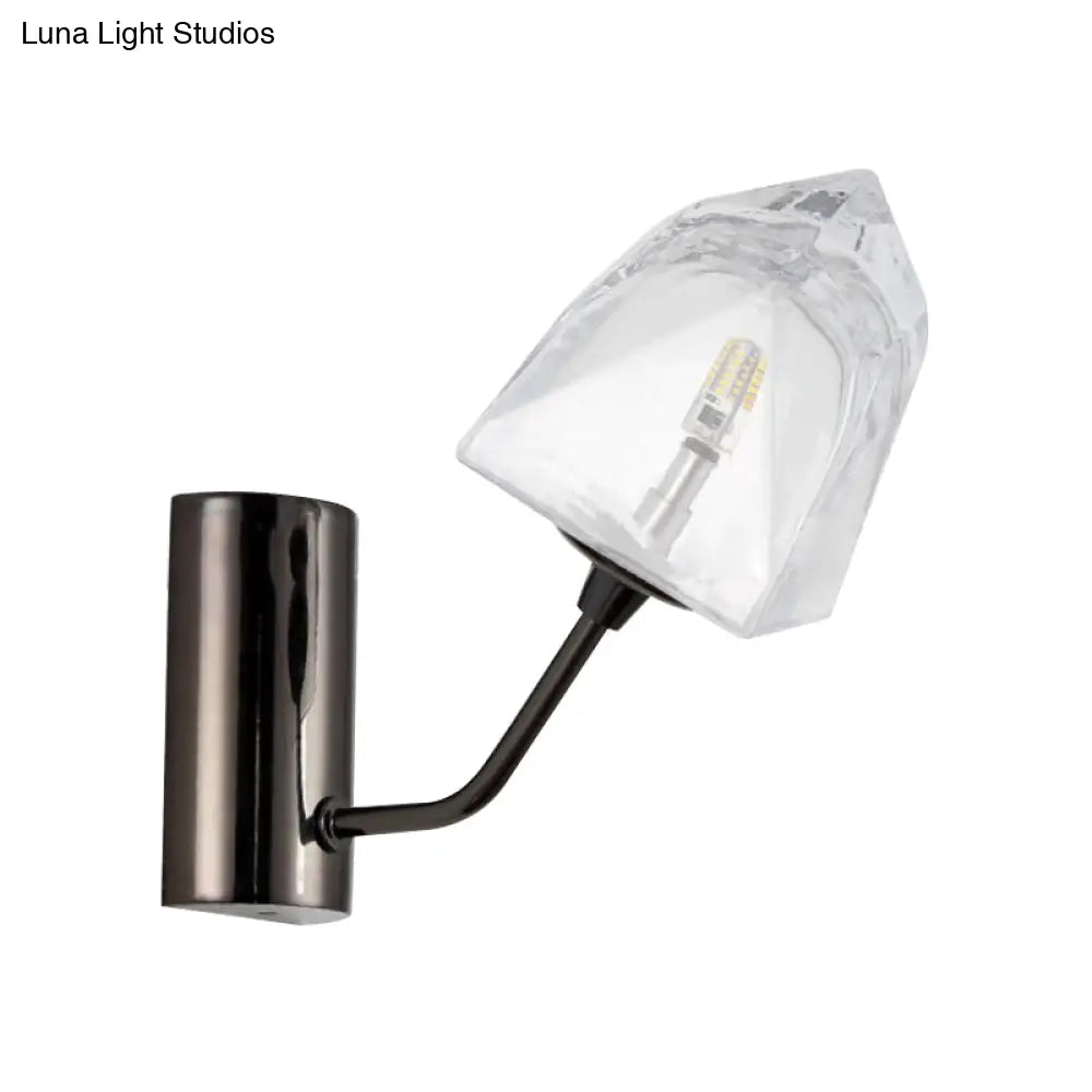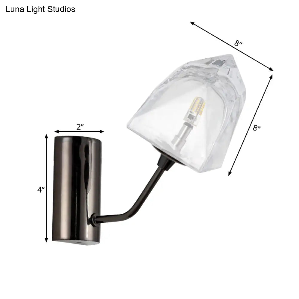 Aplique de pared contemporáneo DecorBites™ de cristal transparente facetado - Media luz con acabado negro/dorado - Ideal para escaleras