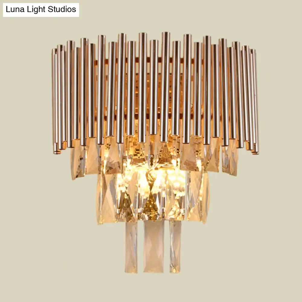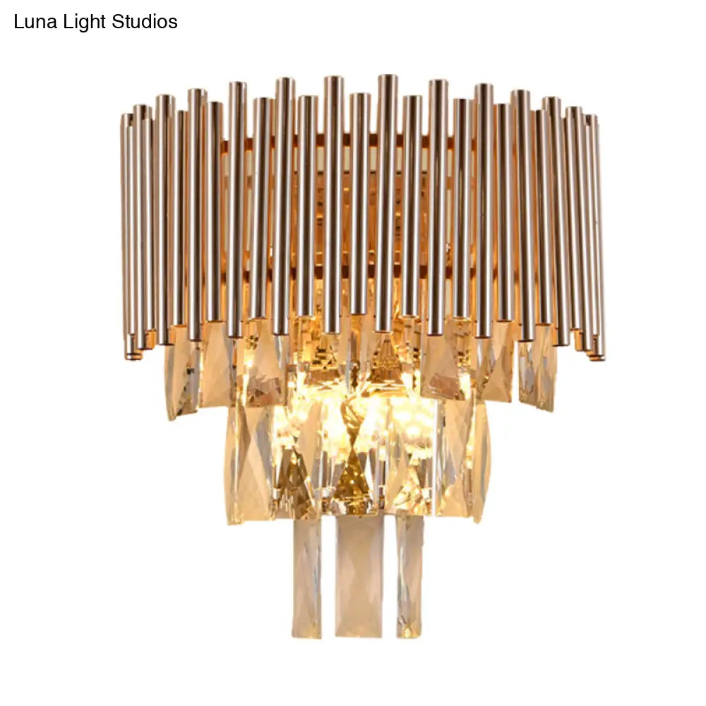 Aplique de pared contemporáneo de cristal DecorBites™ - Acabado dorado, diseño escalonado, 3 bombillas