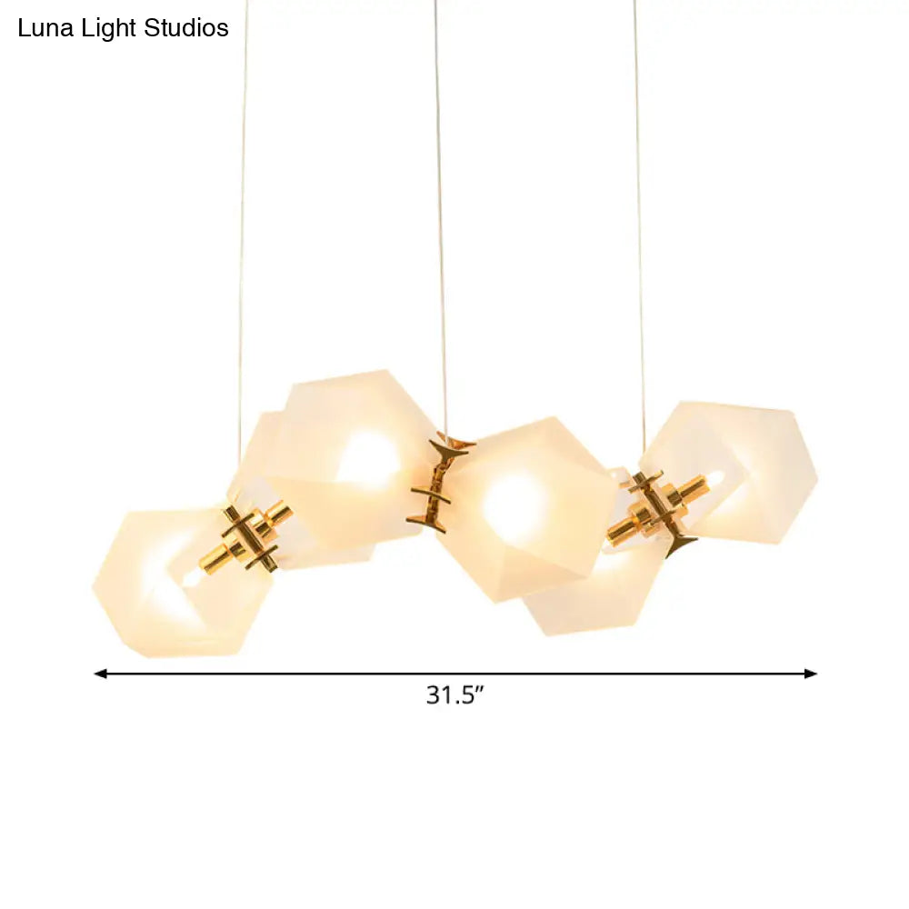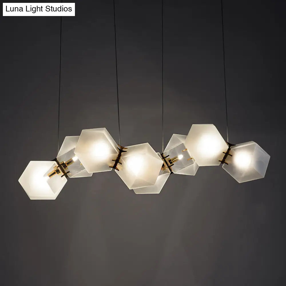 Lámpara de isla DecorBites™ contemporánea de cristal esmerilado con diseño de panal y soporte de techo de latón - Moderna de 2/4/8 luces para sala de estar