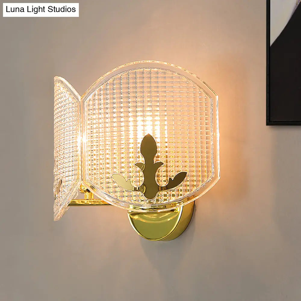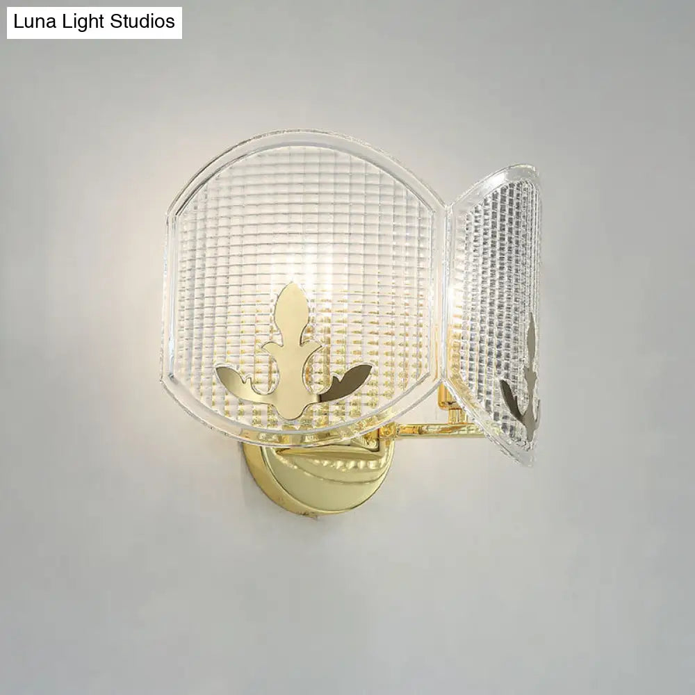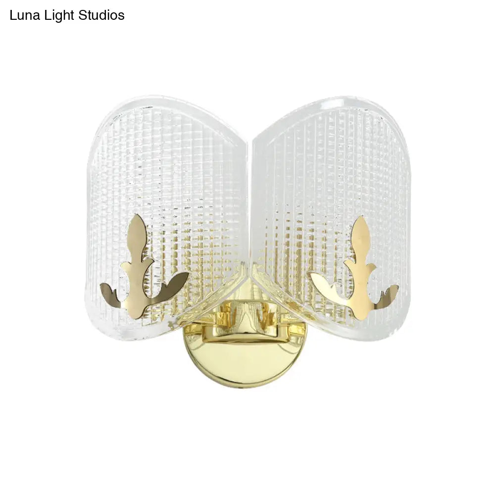 Aplique de pared DecorBites™ de arco dorado contemporáneo con cabezales de celosía de vidrio transparente doble