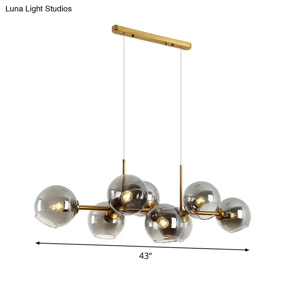 Lámpara de isla redonda contemporánea DecorBites™ dorada/negra con 8 cabezales de cristal ahumado - Diseño lineal