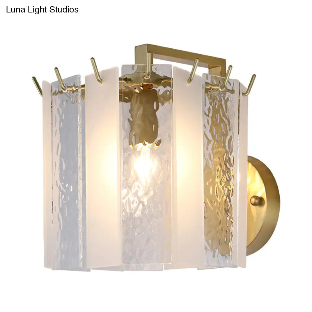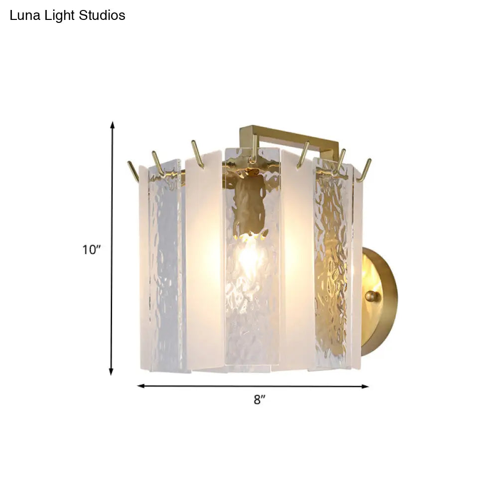 Aplique de pared DecorBites™ contemporáneo dorado con forma de tambor, acabado esmerilado y cristal de agua - 1 luz