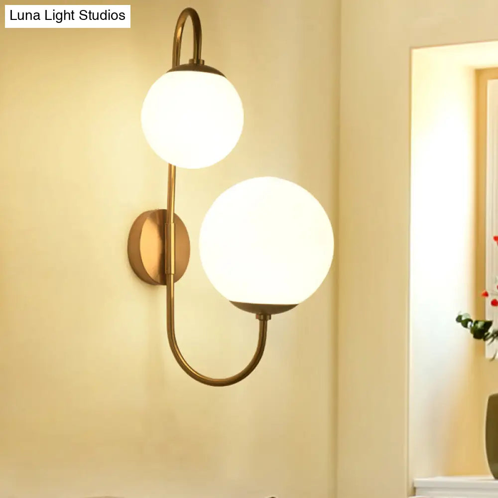 Aplique de pared DecorBites™ contemporáneo de metal dorado con pantalla de cristal opalino - Diseño de brazo con 2 bombillas