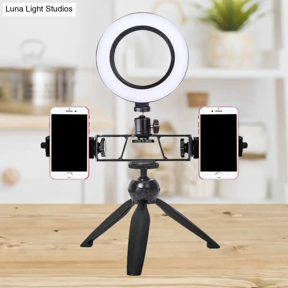 Lámpara de tocador circular LED contemporánea DecorBites™ - Diseño de trípode de hierro negro