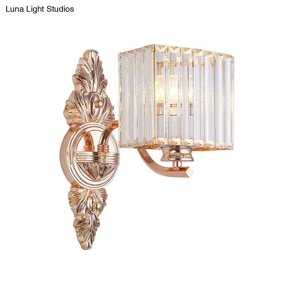 Aplique de pared cuadrado contemporáneo DecorBites™: Cristal transparente y metal, placa posterior tallada, oro rosa