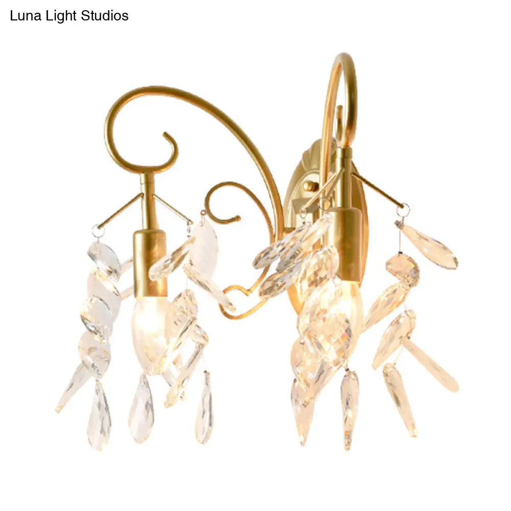 Lámpara de pared DecorBites™ contemporánea con forma de lágrima y cristales, con 2 apliques de latón para dormitorio