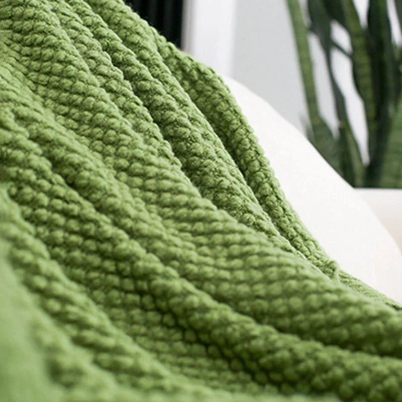 Manta de sofá DecorBites™ de punto acogedora con borlas: decoración y envoltura versátil para el hogar.