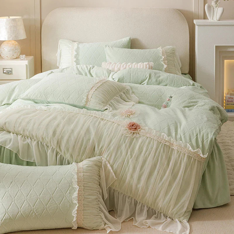 Juego de cama de princesa DecorBites™ Cozy Velvet Lace Flowers