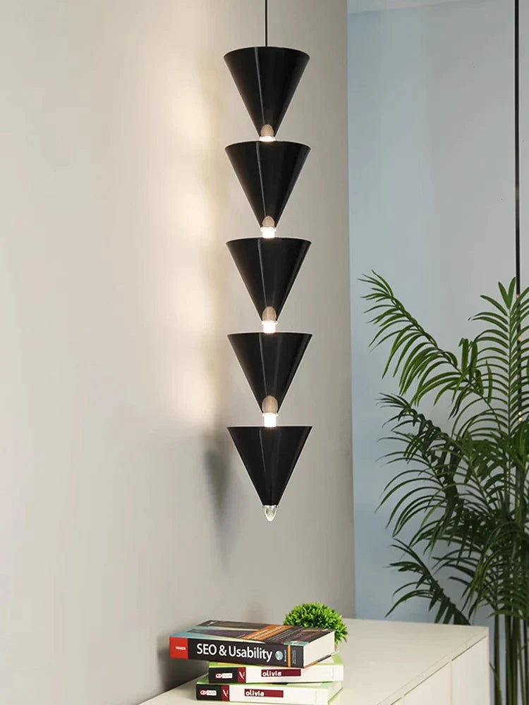 Lámpara de techo DecorBites™ color crema para dormitorio: Lámpara de diseño minimalista cónica de líneas largas y ramificadas