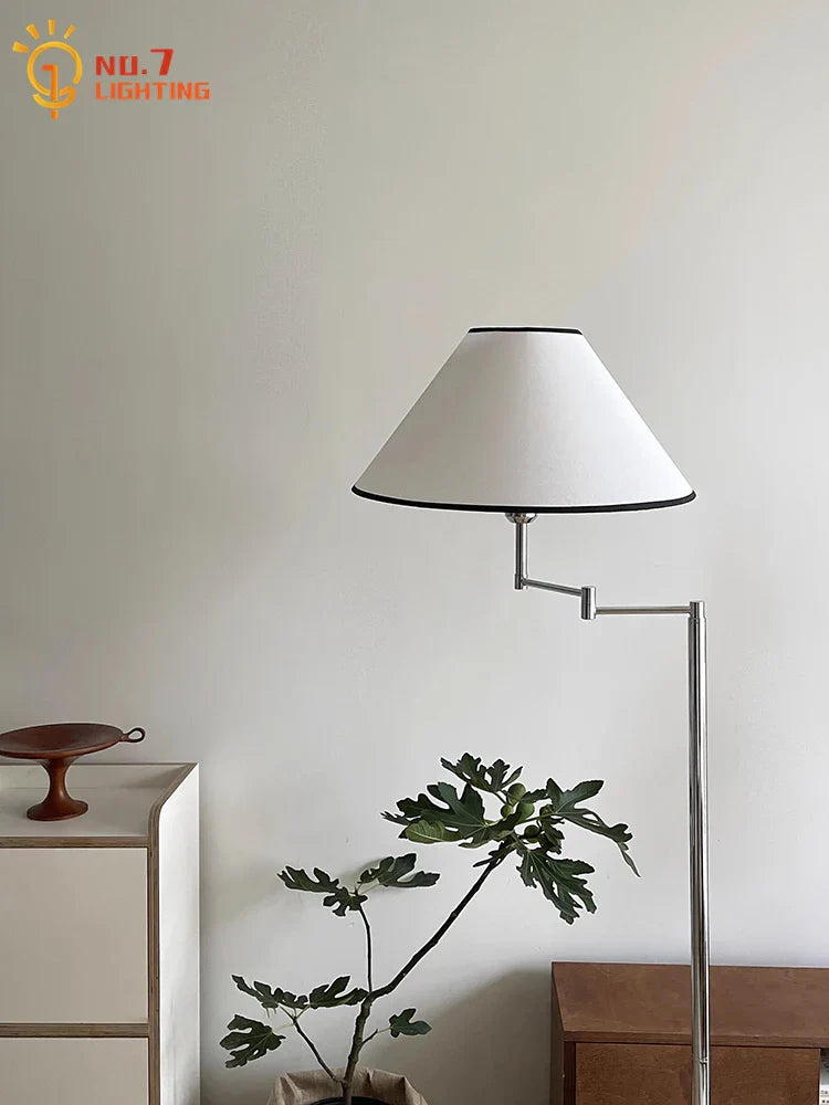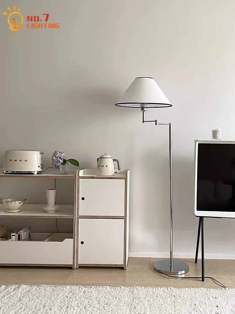 Lámpara de pie LED DecorBites™ color crema con brazo oscilante para espacios de vida modernos