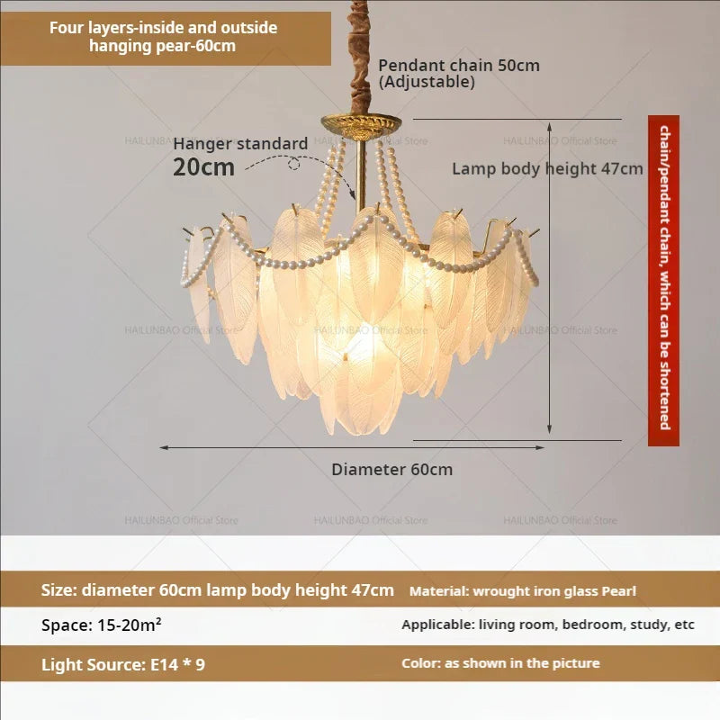 Lámpara de araña DecorBites™ Cream Wind Feather Pearl Crystal para sala de estar y dormitorio de lujo