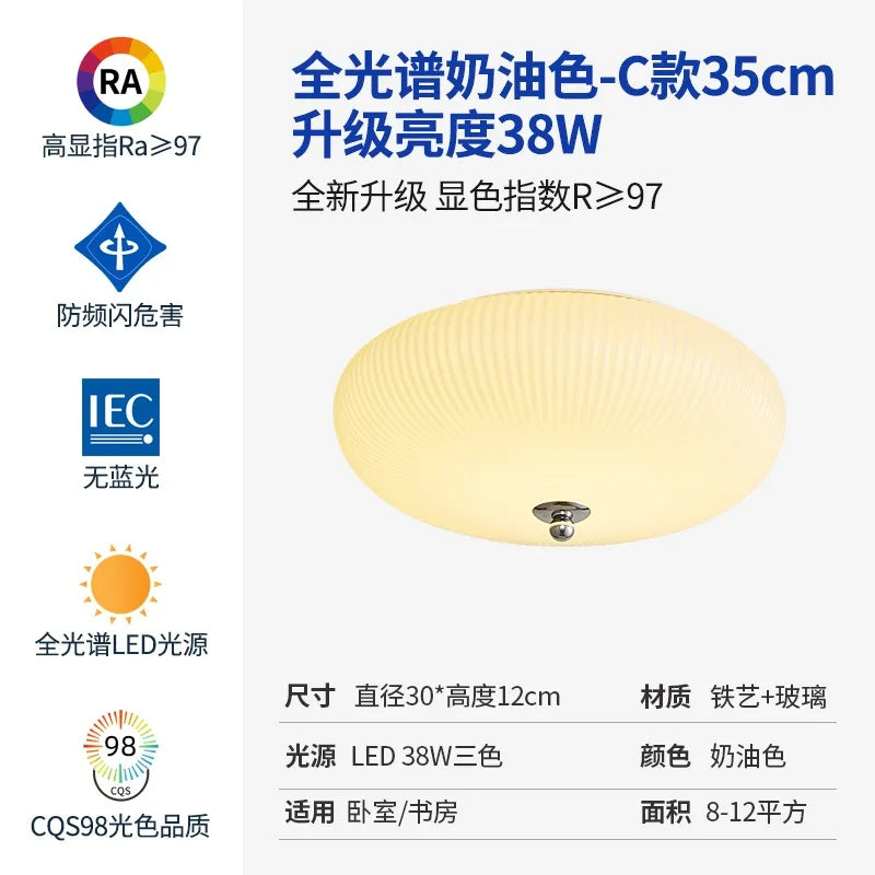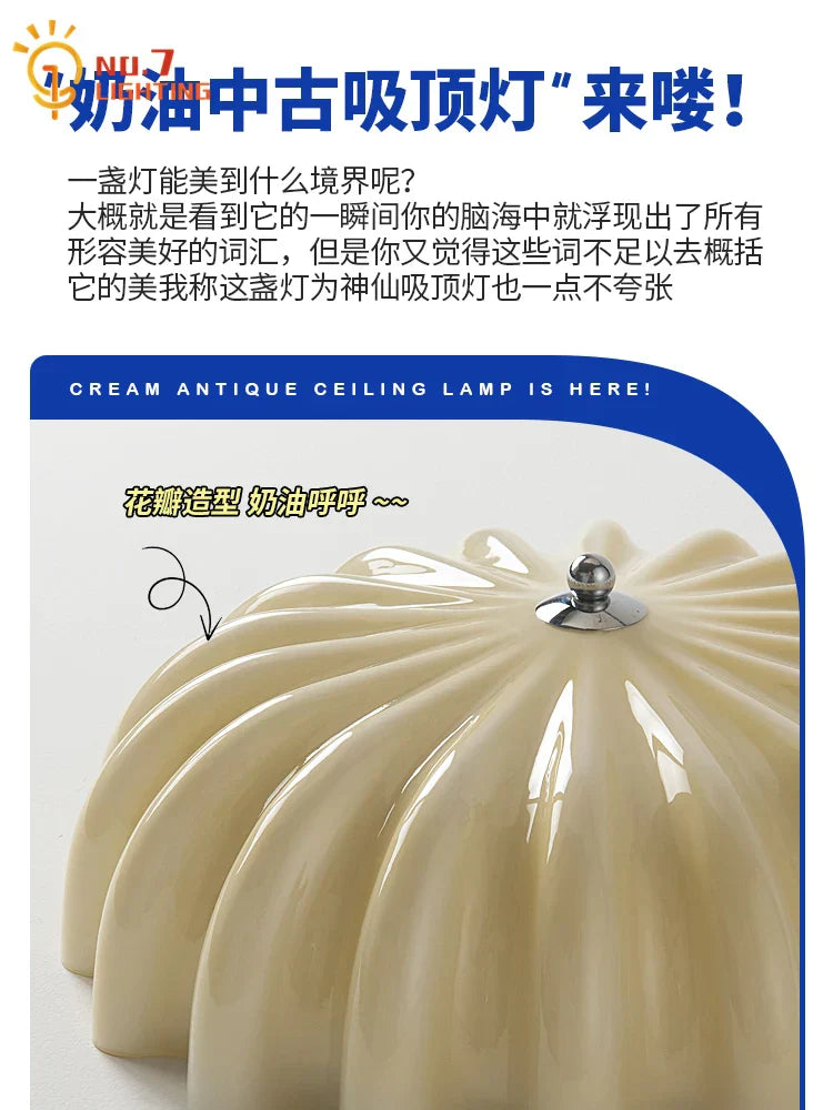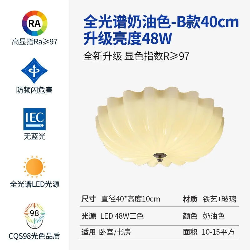 Lámpara de techo de cristal LED DecorBites™ Cream Wind: Diseño francés para dormitorio, estudio, balcón o cafetería