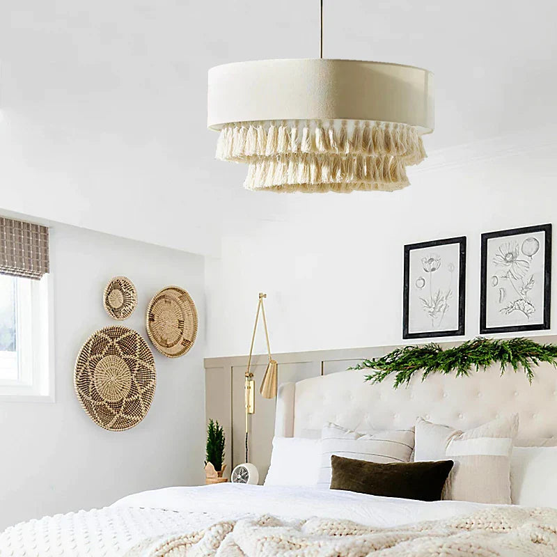 Lámpara de araña DecorBites™ de tela Wabi Sabi bohemia cremosa para dormitorio y comedor creativos