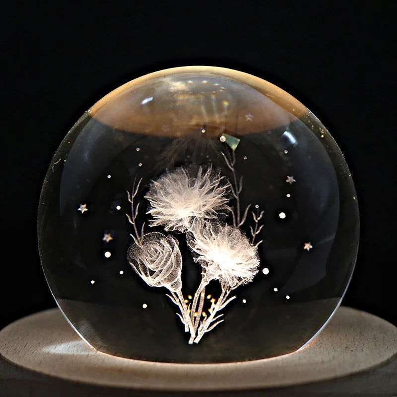 Caja de música con bola de cristal DecorBites™: Proyección de luz giratoria, regalo ideal para cumpleaños y San Valentín