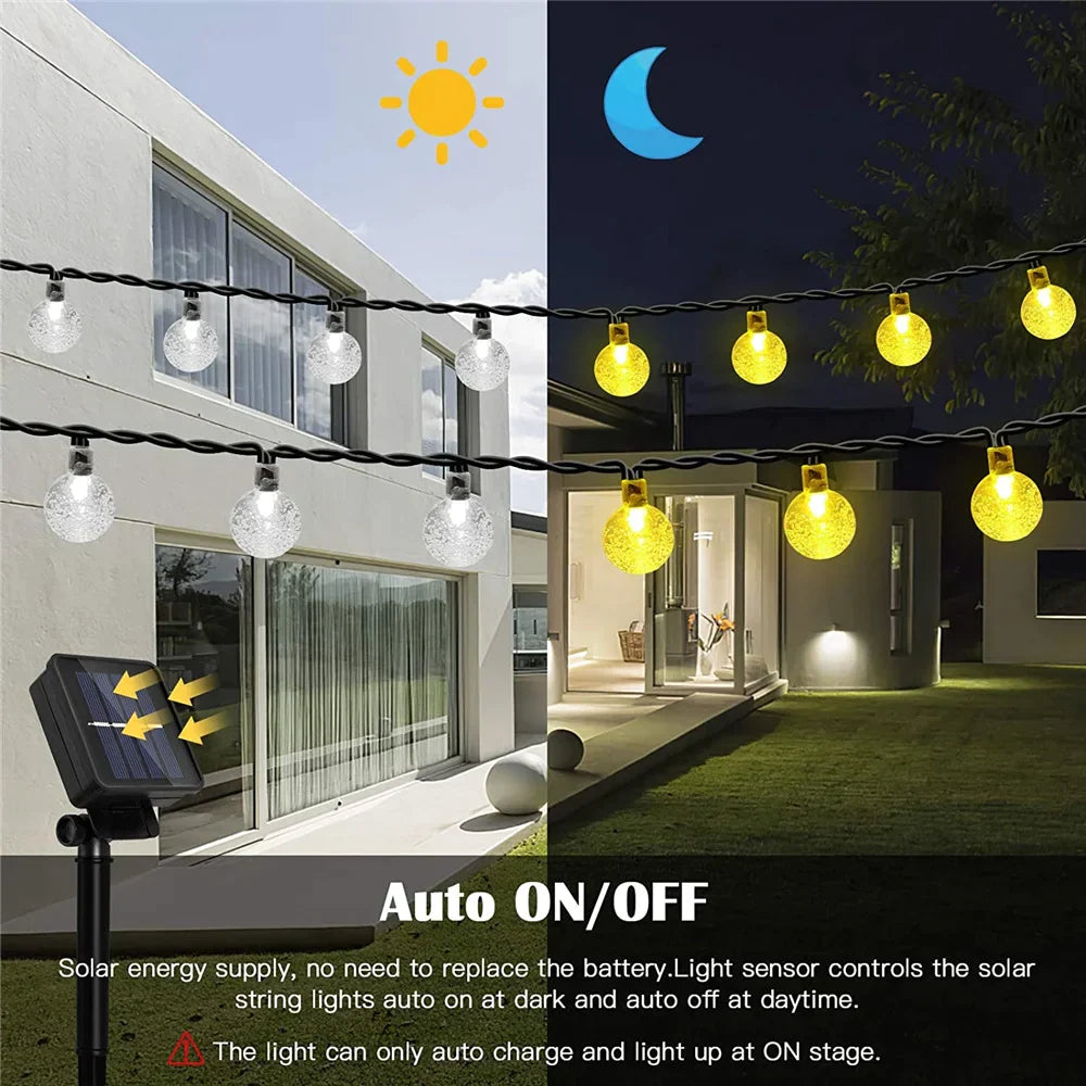 DecorBites™ Luces solares de hadas con forma de bola de cristal para decoración exterior de jardín, Navidad y bodas