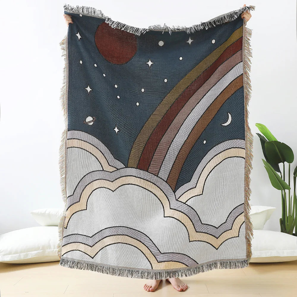 Manta tejida con estampado de margaritas DecorBites™: elegante manta con borlas para decoración del hogar y picnics