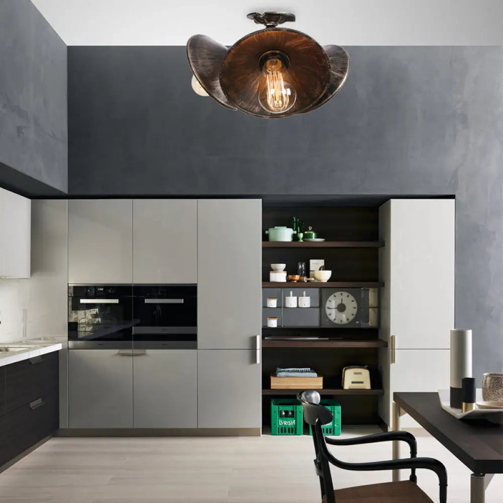 Lámpara de techo DecorBites™ en bronce antiguo/plata envejecida con elegante acabado de hierro forjado - 3 cabezales, montaje semiempotrado para vestíbulo