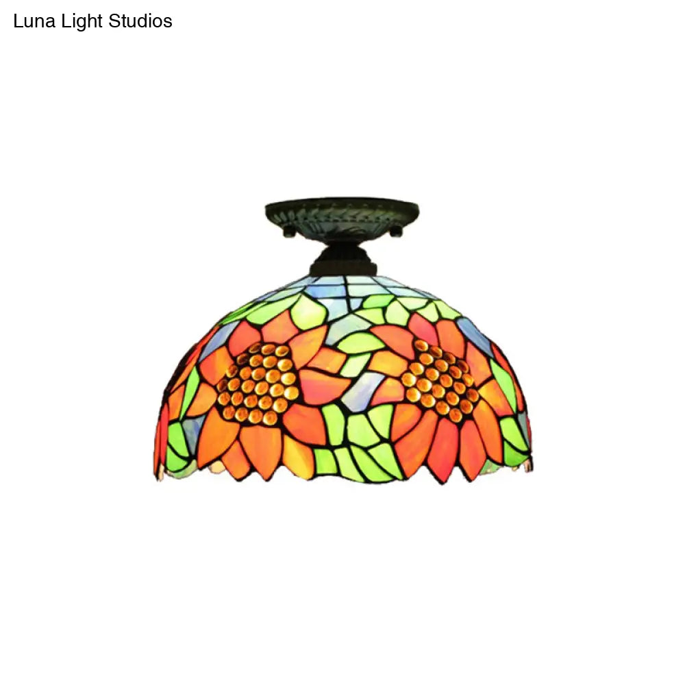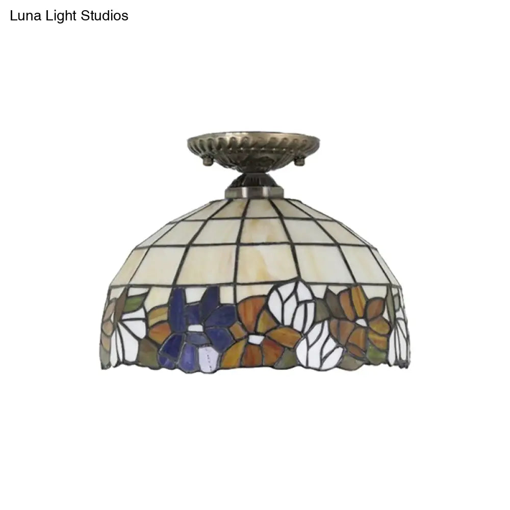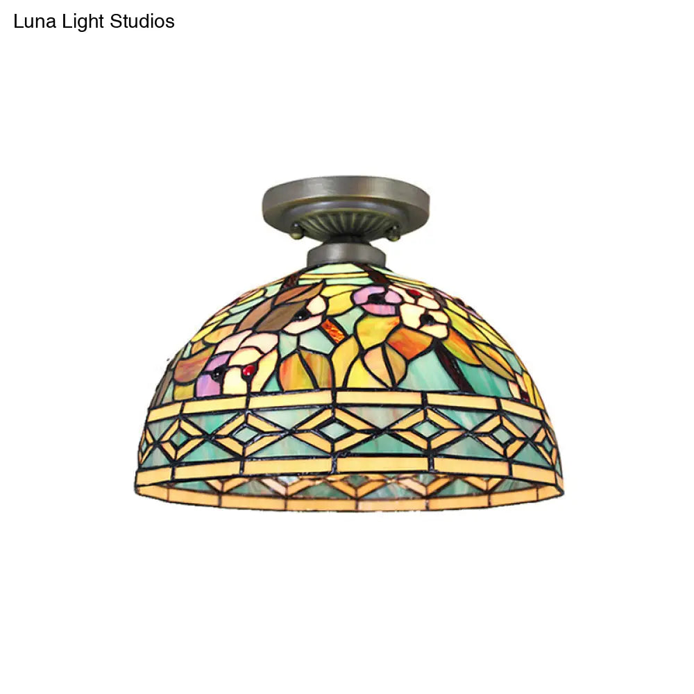 DecorBites™ Lámpara de techo semiempotrada de cristal artístico estilo Tiffany en bronce antiguo con 2 luces de cúpula para pasillo