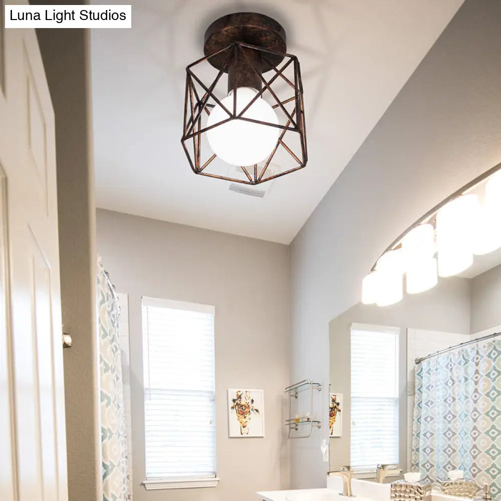 Lámpara de techo semiempotrada DecorBites™ con jaula de alambre en bronce antiguo y pantalla hexagonal