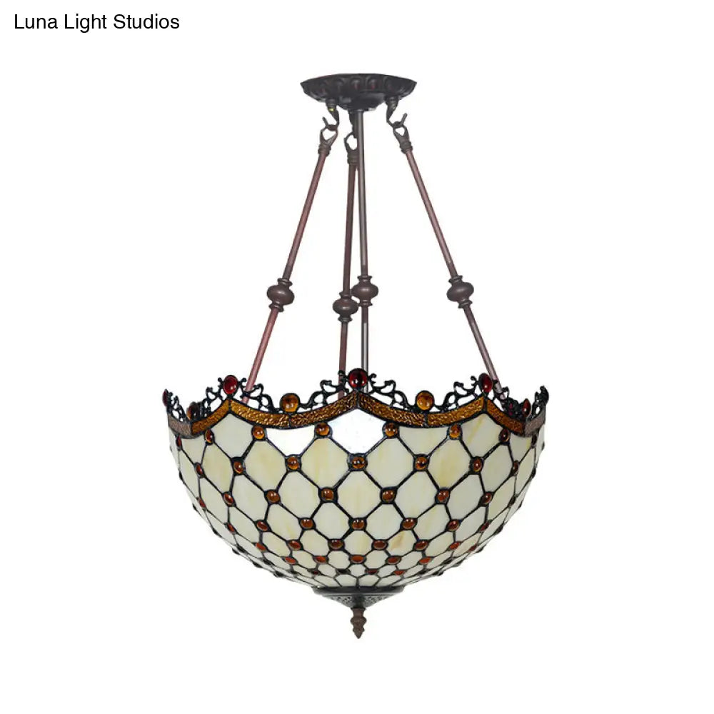 DecorBites™ DecorBites™ Lámpara de techo semiempotrada estilo Tiffany de cristal beige con detalles de cuentas - 16"/18" de ancho, 2 luces para pasillos