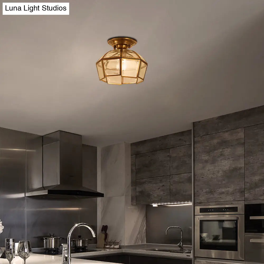 DecorBites™ Lámpara de techo empotrada de estilo colonial biselado - 1 bombilla, cristal transparente, latón