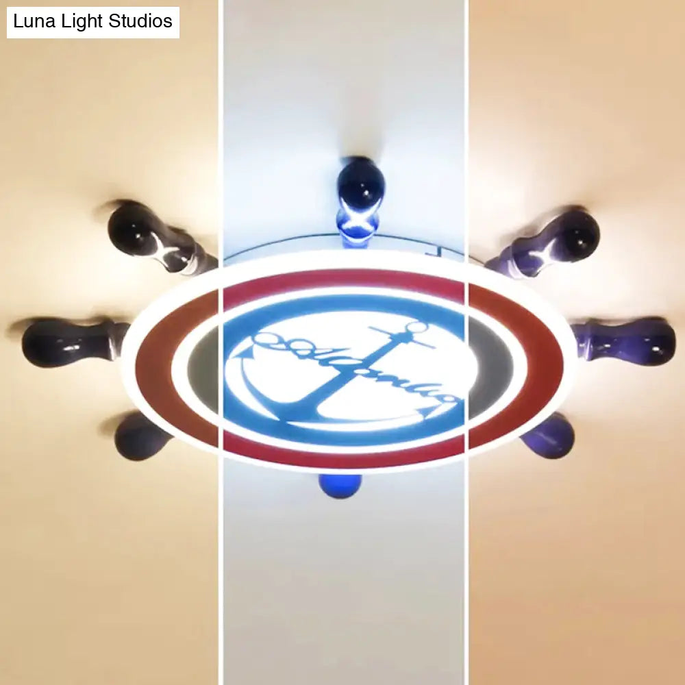 Lámpara de techo DecorBites™ con diseño de timón náutico azul para dormitorio infantil con ancla y diseño empotrado en acrílico.