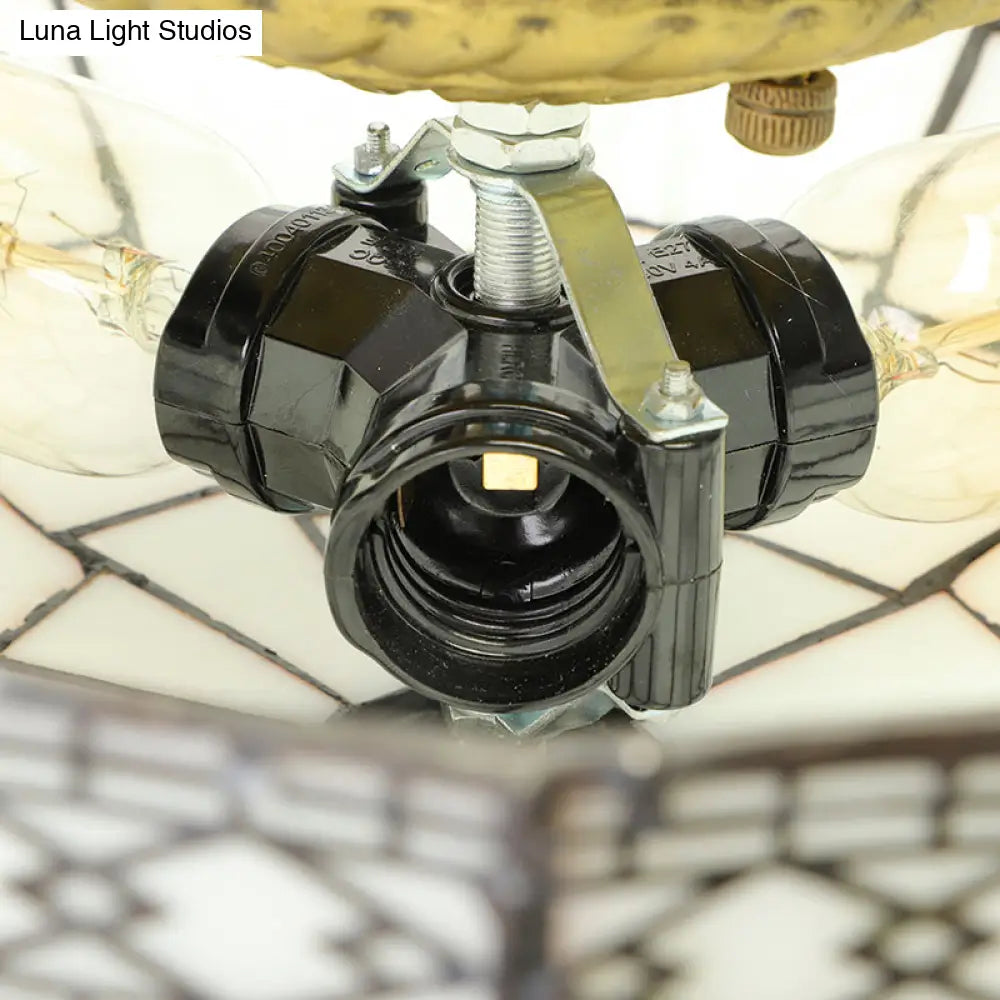 Lámpara de techo empotrada DecorBites™ Bowl de 8"/8.5"/10" con vitral y 3 luces en color beige - Iluminación empotrada tradicional para sala de estar