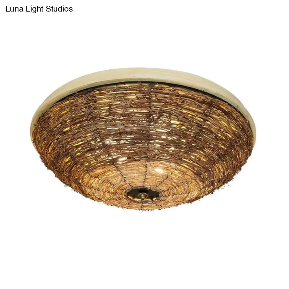 Lámpara de techo empotrada DecorBites™ con pantalla de ratán y diseño de cuenco, color marrón asiático, con 3 bombillas para comedor