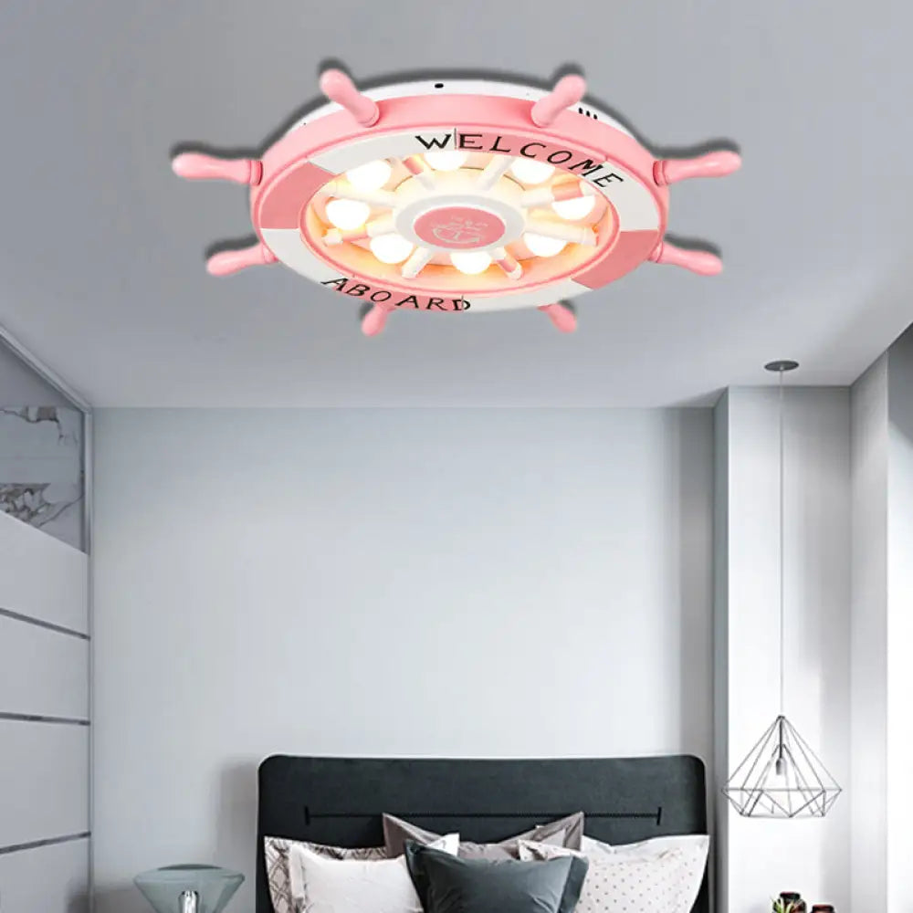 Lámpara de techo DecorBites™ con diseño de niña timón de dibujos animados para dormitorio - Luz LED empotrada náutica rosa de acrílico y metal
