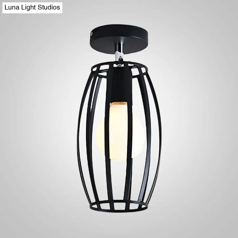 Lámpara colgante industrial negra DecorBites™ para techo de pasillo - Semiempotrada, forma esférica/ovalada, con estructura de hierro, 1 luz