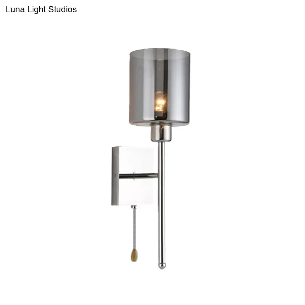 Aplique cilíndrico moderno DecorBites™ color beige/cromo con 1 luz, cristal ahumado/transparente, montaje en pared - Opciones de interruptor disponibles
