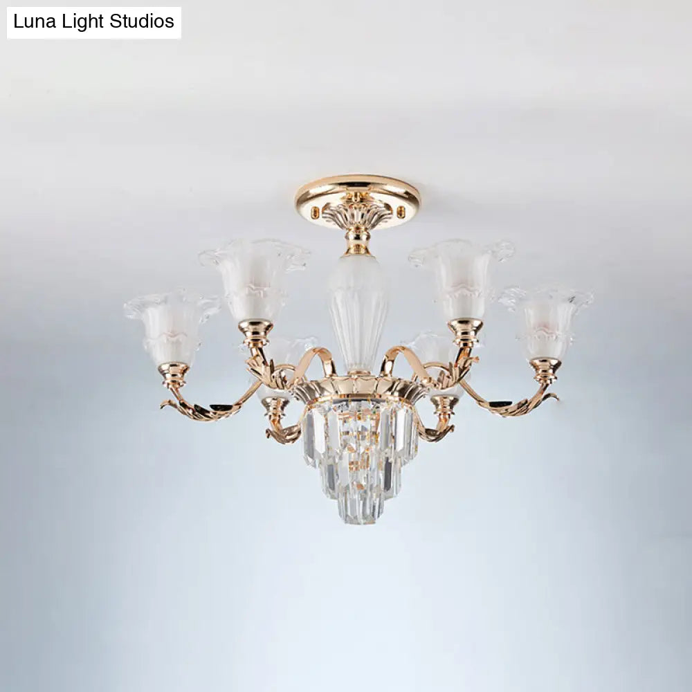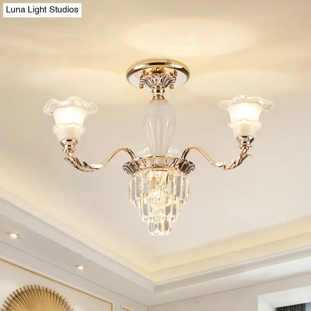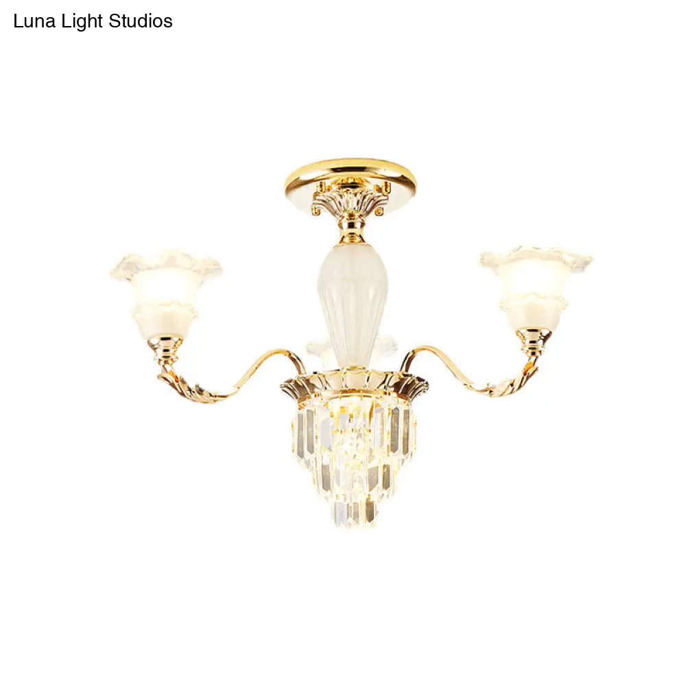 Lámpara de techo semiempotrada DecorBites™ Modern Bellflower de cristal esmerilado, color dorado con detalles de cristal.