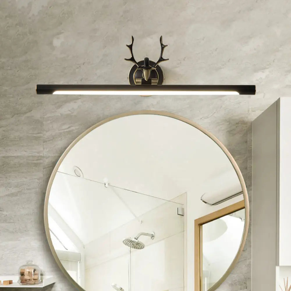 DecorBites™ Lámpara de pared LED para tocador con brazo de asta negra moderna - Acabado metálico